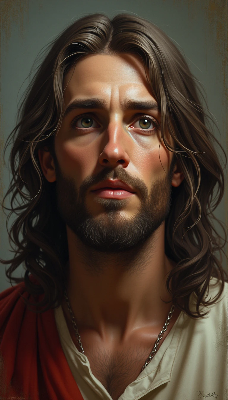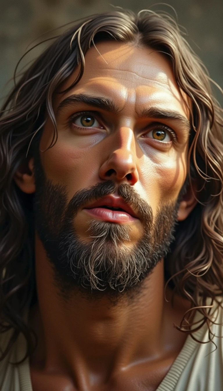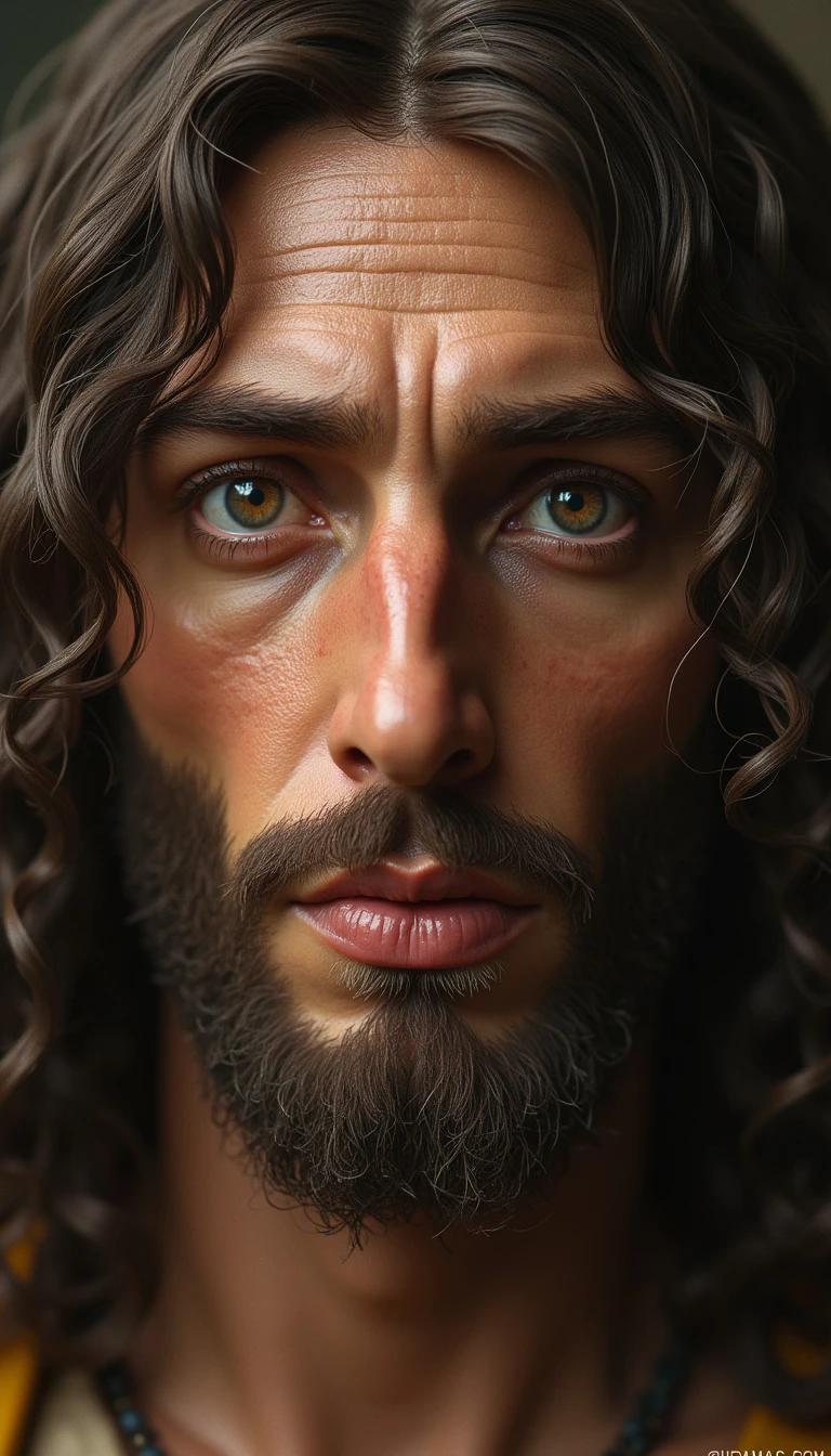 face of realistic, Jesus Christ, facing the camera, 1m away