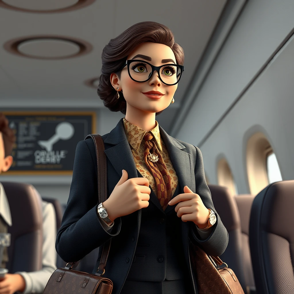 Crie uma imagem de um professora jovem e bem vestida, com roupas elegantes, com joias, relógio e brincos caros, ela está escrevendo na lousa "estou indo pra Dubai" e ao seu lado malas de viagem cheias de roupas . Ela esta de frente para os alunos que estão chorando de saudades. Acrescente em algum lugar o nome da escola "Orville Derby" . use alta resolução em 4k. utilize figuras 3de um estilo humorístico